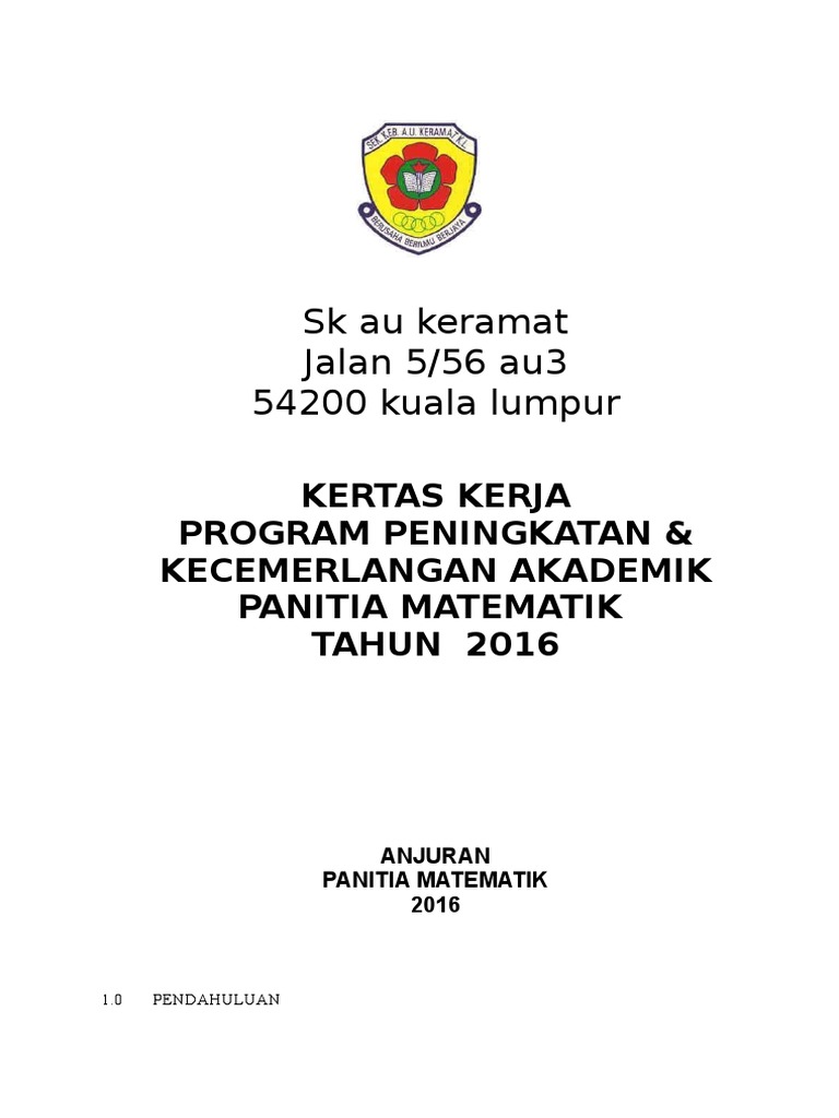 Kertas Kerja Program Peningkatan Akademik Panitia Matematik Pdf