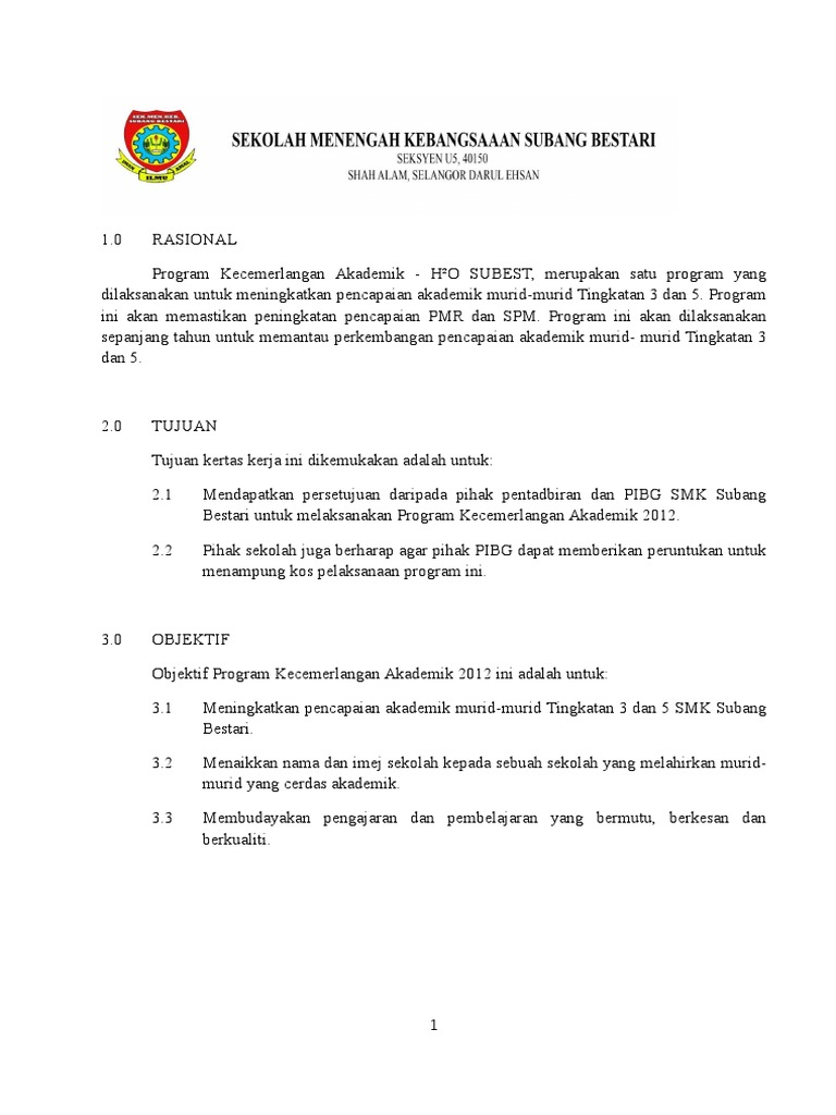 Kertas Kerja Program Kecemerlangan Akademik 2012 Revised 1 Pdf